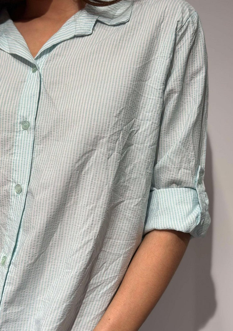 Skjortebluse med krage, knepping hele veien og knepping på ermene.