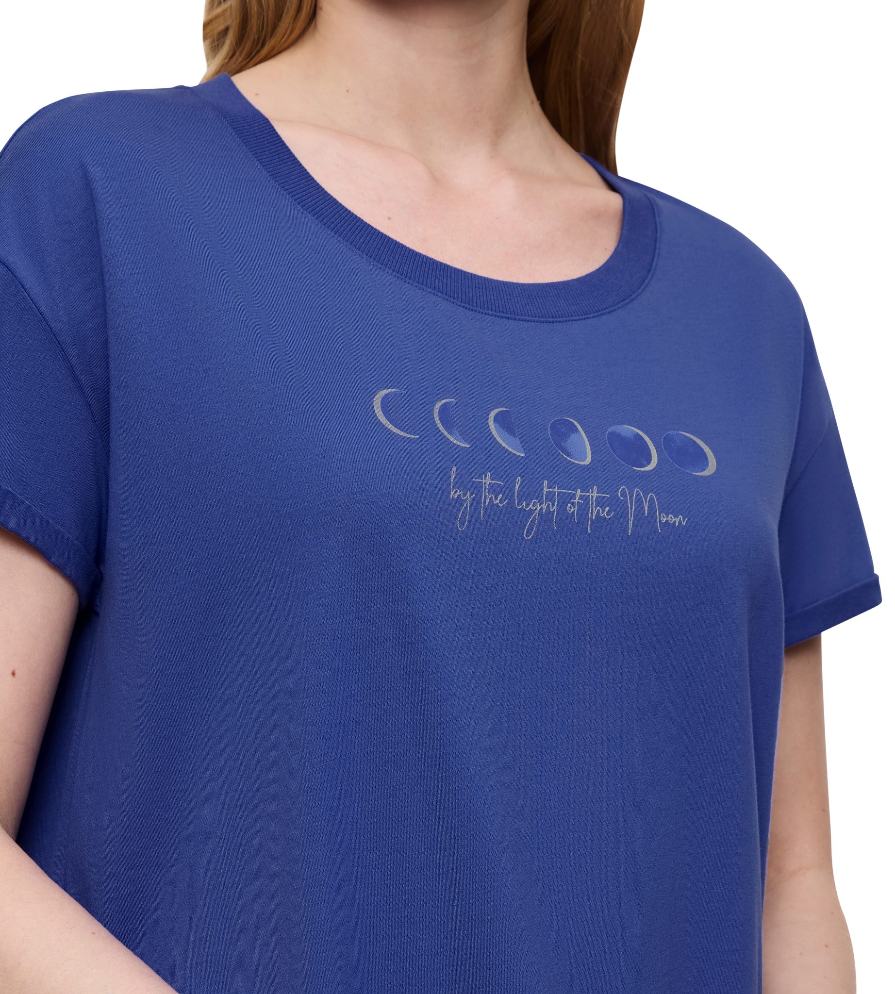 Komfortabel nattkjole med oppbrettede korte påsydde ermer. Ribbet rund hals og buet fald. Måneprint på bringen.